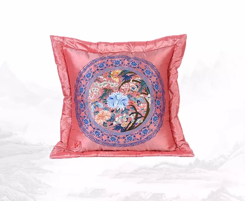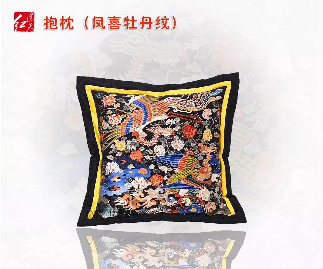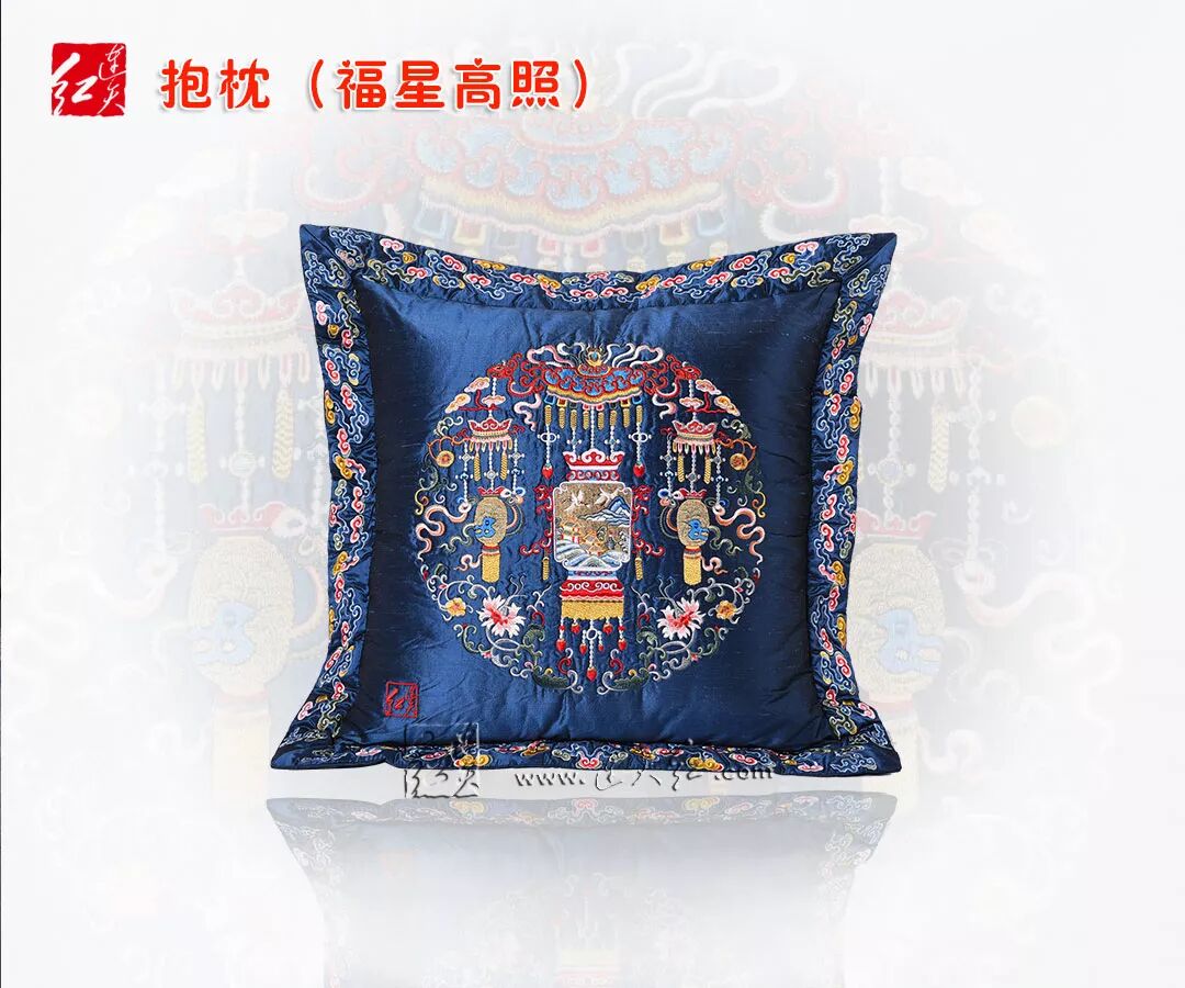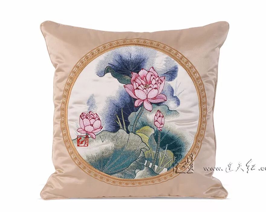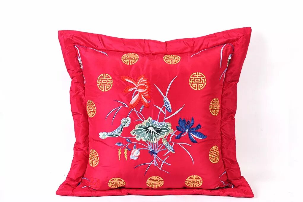 【产品名称】:五彩莲花寿字纹抱枕(真丝)