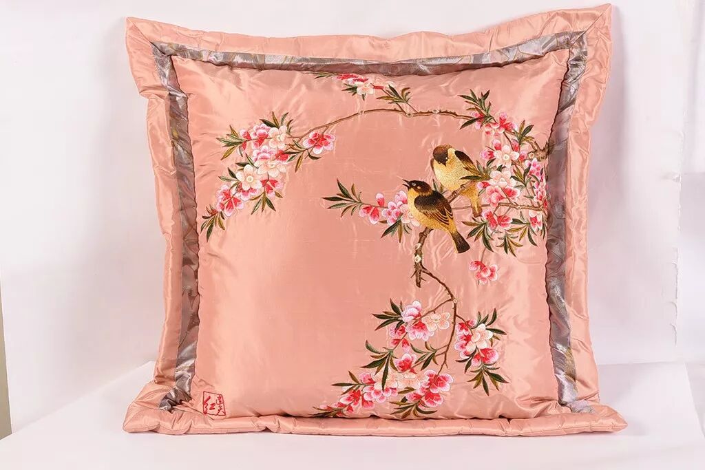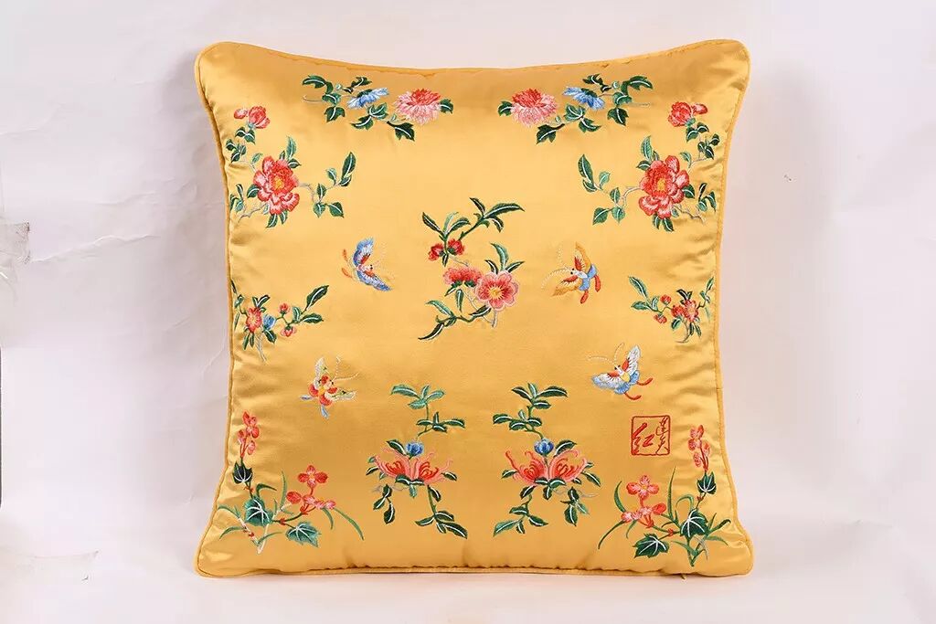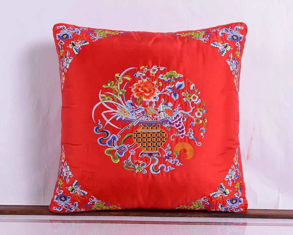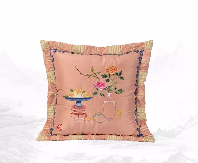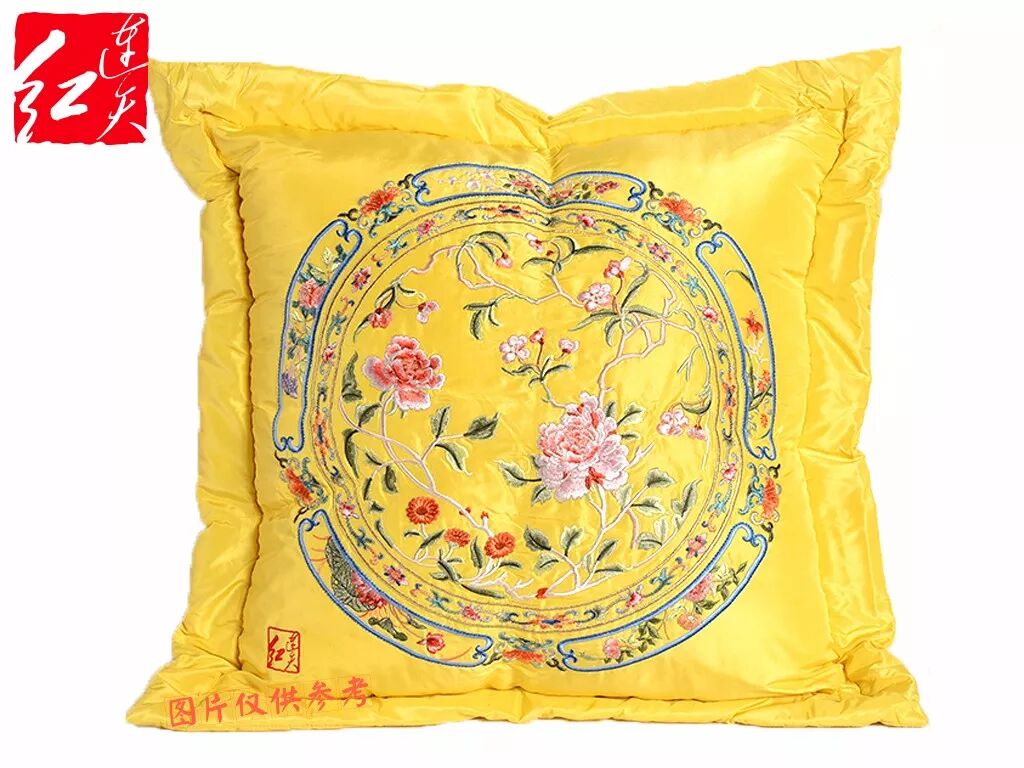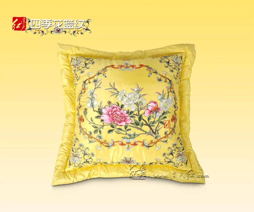 【产品名称】:五彩莲花寿字纹抱枕(真丝)