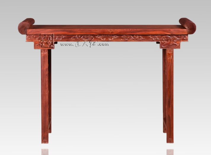 供案,是中国家具里最神圣的家具,它满足了宗教供奉仪式的需要,千百年来,亘古不变。 最早的供案,可以上溯到商周时代的长案“禁”。禁和祭俎均为礼仪祭祀用具,其上主要承置樽、豆等酒礼器及祭祀用品。这种禁、俎相配的陈设格局到战国时期还十分流行。