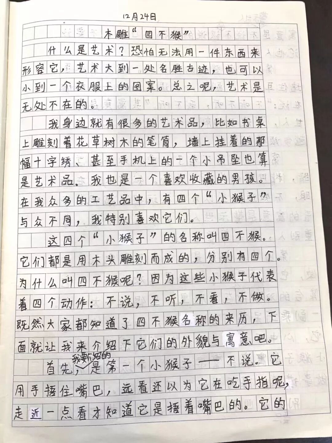 言传身教,家里的小朋友也渐渐的喜欢中式文化产品,并对其有着独特的理解,下文便是小朋友对于木雕“四不猴”的感悟: