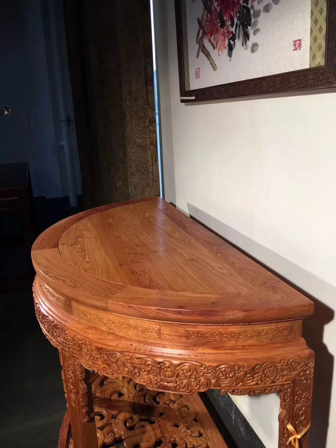 一花一世界,一木一菩提。在我国传统的器物类文化中,红木也像玉、金、象牙等一样,成为了寄托传统文化、阐释民族精神的载体,通过红木来追求文化意境和审美意趣。木材皆有纹理、有木性。红木有材,历数百年风霜雪雨方能成材堪用,有如天降大任于斯人;红木可塑,红木质地坚硬,在能工巧匠手中能变成精美的艺术品,红木之材是可雕可造之材;红木质实,红木质量大、密度小,给人以厚重、质朴的感觉,有诚恳踏实的君子之风;红木有香,紫檀、花梨、香枝、酸枝等红木天然有淡香,香芬沉郁凝重,绝无庸脂俗粉的浮华;红木有恒,红木制品坚实耐用,历经岁月洗礼、砥砺而不减神韵。