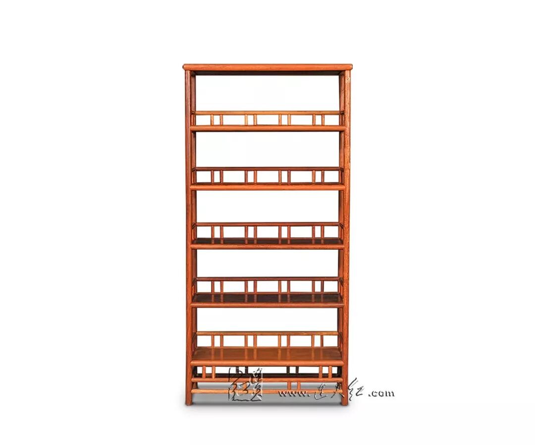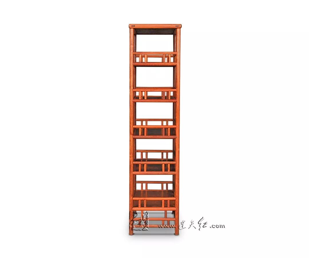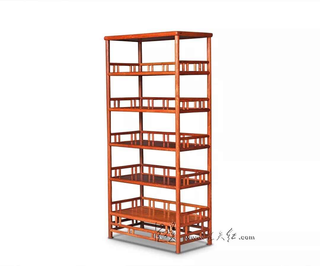 【连天红 明式书架】 代社会稳定、农业手工业兴旺发达,随着经济的日益繁荣,人们开始提高对精神的需求,园林、住宅建设开始兴旺起来,文人士大夫、商贾贵族们新建的园林、府邸开始对家具有大量需要的同时,对家具工艺的审美水平也越来越高。此外,郑和下西洋,运回了大量的花梨、紫檀等高档木料,这个特殊的时代背景也为明代家具的发展创造了有利的条件。 明代家具在制作工艺和艺术风格上都有非常高的水平,总结起来有以下几点审美特点: