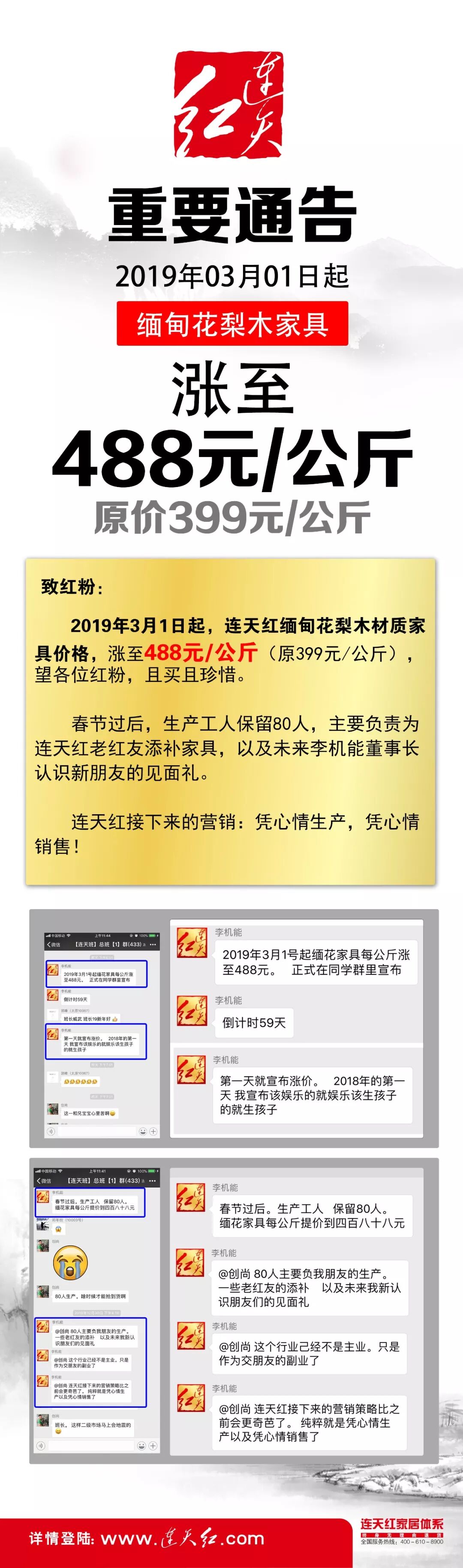 2019年3月1日起,连天红缅甸花梨木材质家具价格,涨至488元/公斤(原399元/公斤),望各位红粉,且买且珍惜。