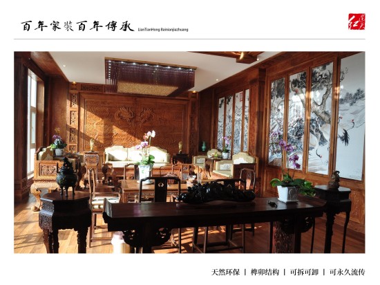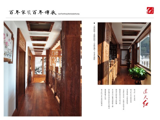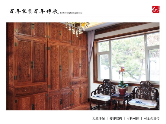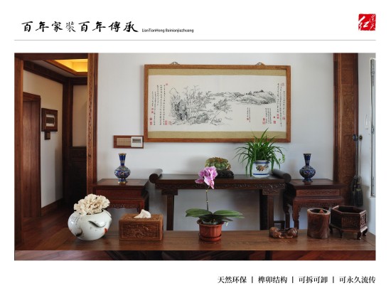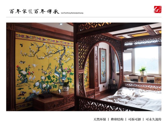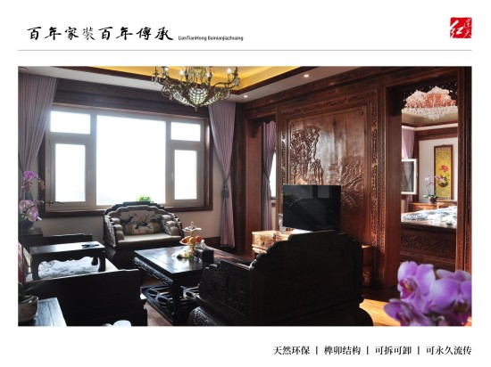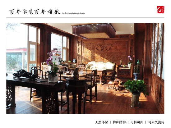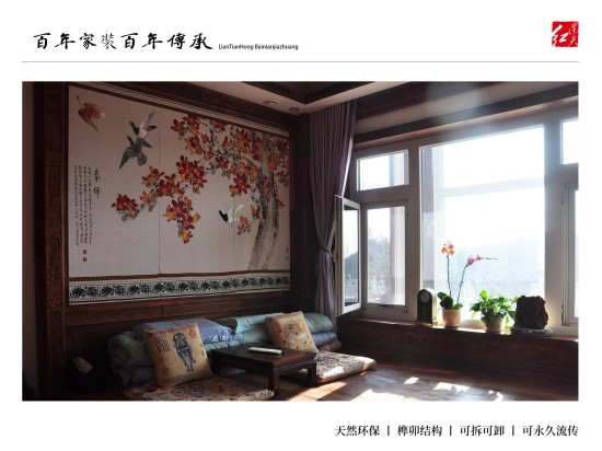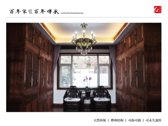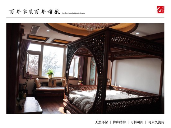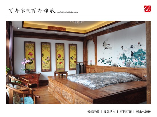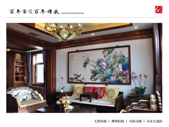 连天红百年环保家装:为有学识有文化、能够欣赏皇室宫廷文化、熟知传统文化精髓、并有着自己独到见解,同时拥有着高品位的生活模式的人士服务,根据客户自身喜好、特有气质等量身定制设计独一无二的中式家装。