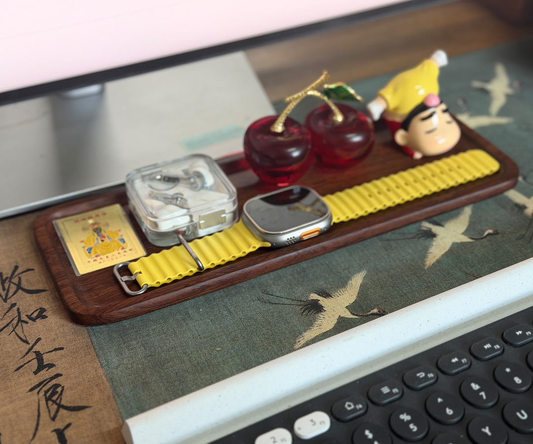器型: 长方浅槽雅盘,边角圆润柔和,盘面开阔无冗余饰件, 既是茶席的干泡承托盘,也能作桌面的小物收纳盘,简约里藏着中式器物的留白美感。适配: 茶席承盖碗、书桌纳数码小物、窗台放香薰摆件, 一方木盘,承得下茶事雅意,也容得下日常琐碎,让东方质感落进生活每一处。