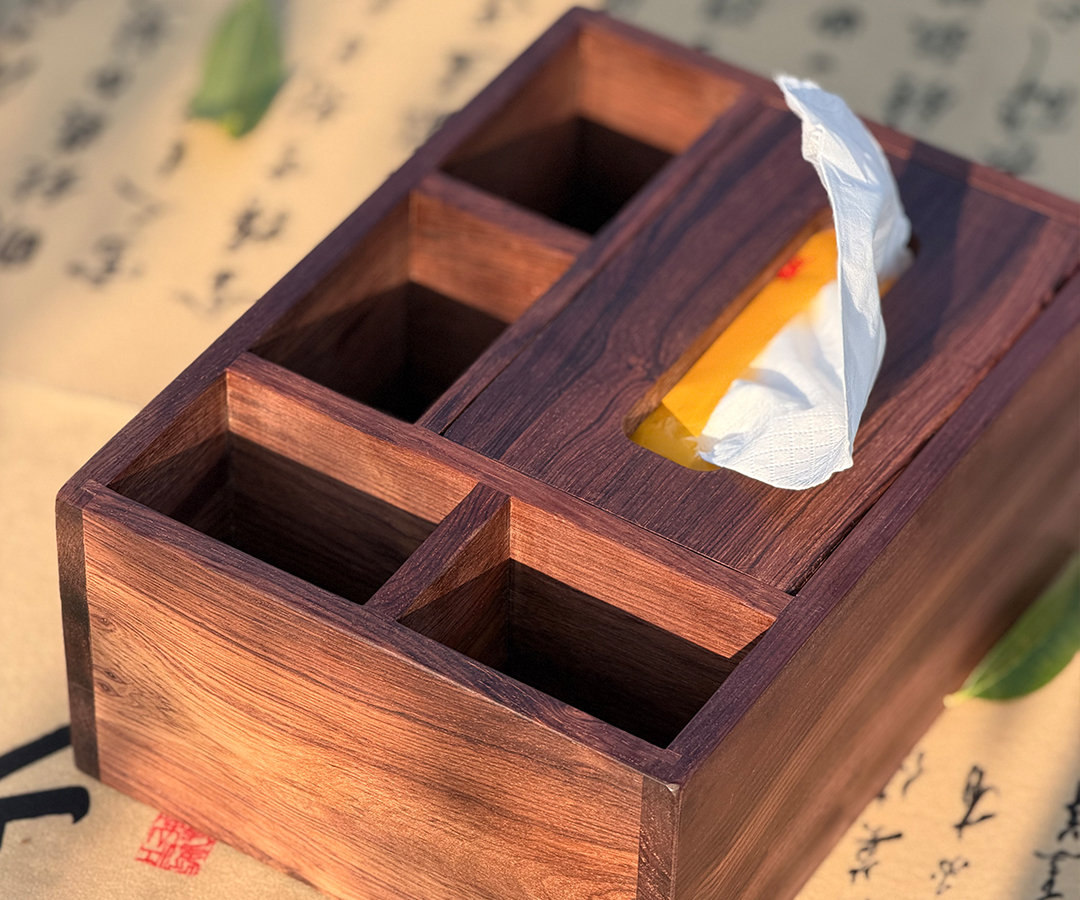 器型: 方正雅盒,一体分设多格 —— 主格嵌纸巾抽口,余格可纳牙签、香插、小物,既是纸巾盒,也是桌面收纳 “小方仓”,实用与雅韵兼存。适配: 茶桌旁承纸巾、纳茶针,餐边柜收牙签、放小碟,书房里藏香篆、置笔搁 —— 把零散小物归置得妥帖,让日常桌面多几分中式雅序。