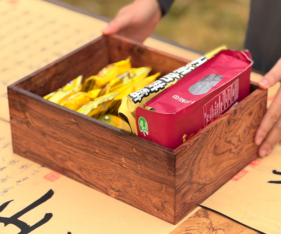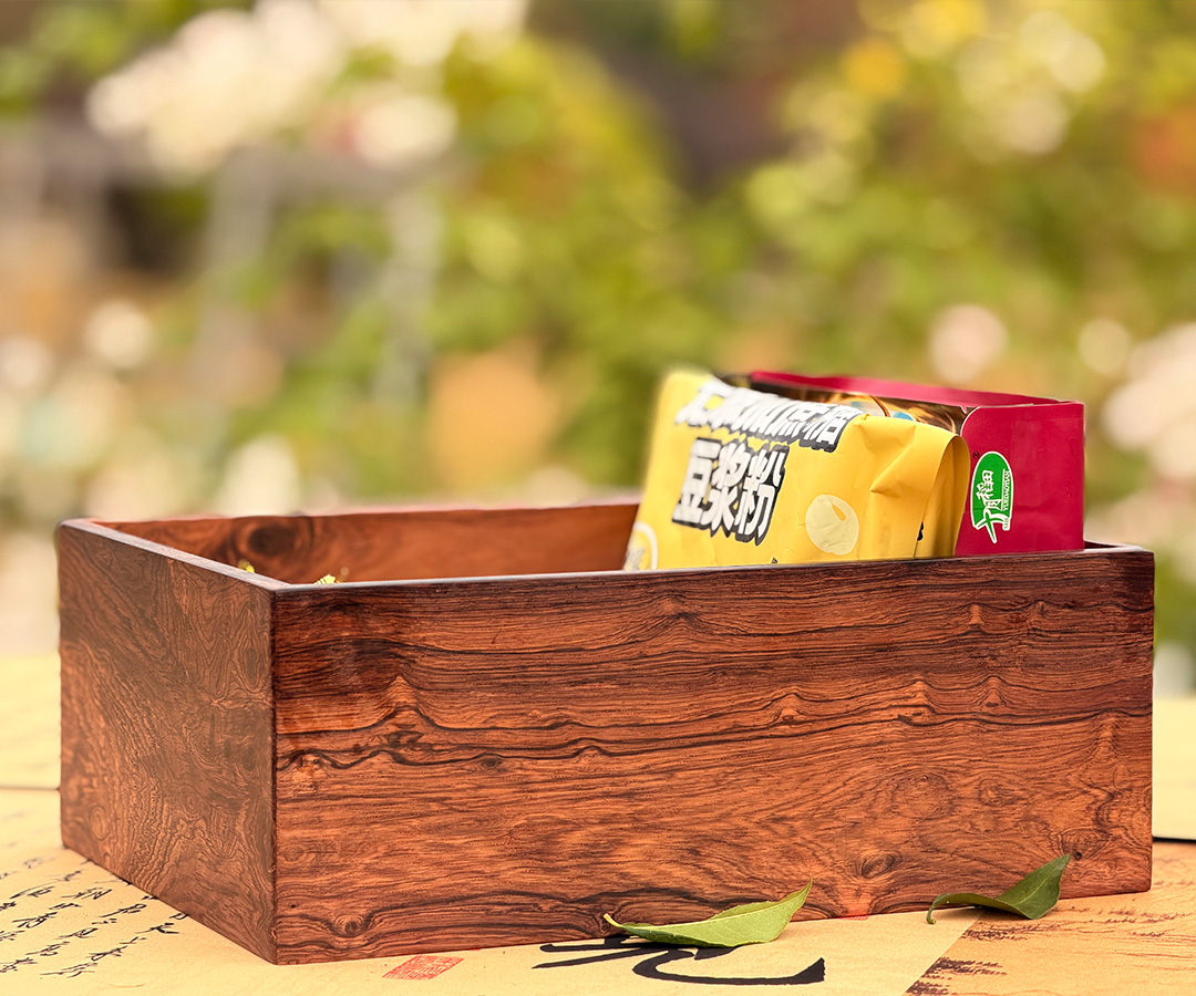 器型: 简约长方体敞口盒,无冗余装饰,敞口设计取放物品更顺手,大小刚好适配桌面、茶台 —— 既能归置零食茶点,也能收纳文具小物,是 “桌面整洁神器”。适配: 茶桌装茶点瓜子,书桌收笔尺便签,客厅放遥控器杂物 —— 把零散物件拢进一方木盒,让日常桌面既整洁,又藏着原木的温柔烟火气。