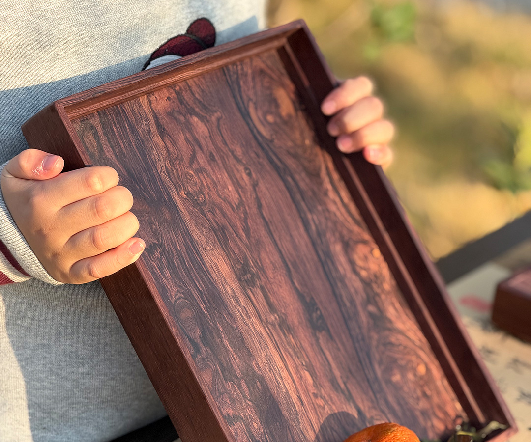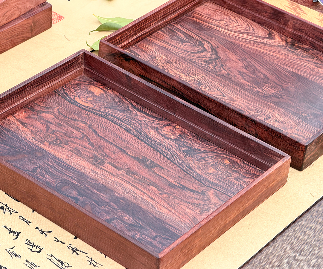 器型: 方正雅韵,边框严丝合缝,承托面平整开阔,侧边一体成型无冗余饰件,极简中见木作功底。适配: 可作茶盘承盏、餐碟置物,也能当案头雅器收纳文玩香具 —— 摆得下烟火食光,也衬得起书房清趣,是日常里的 “轻中式” 质感好物。