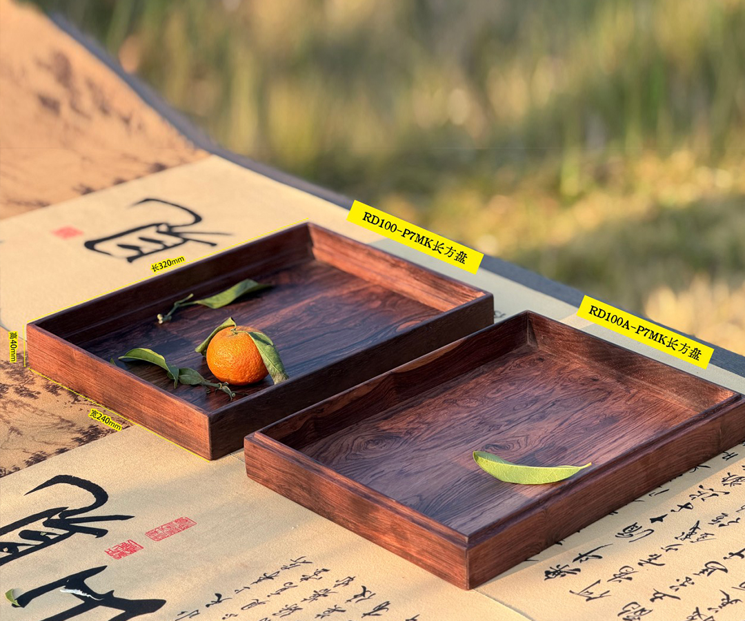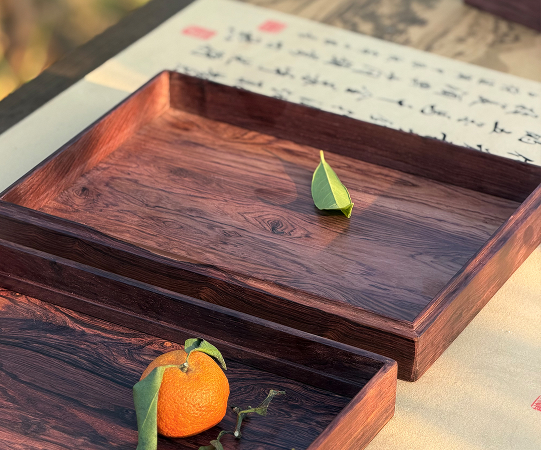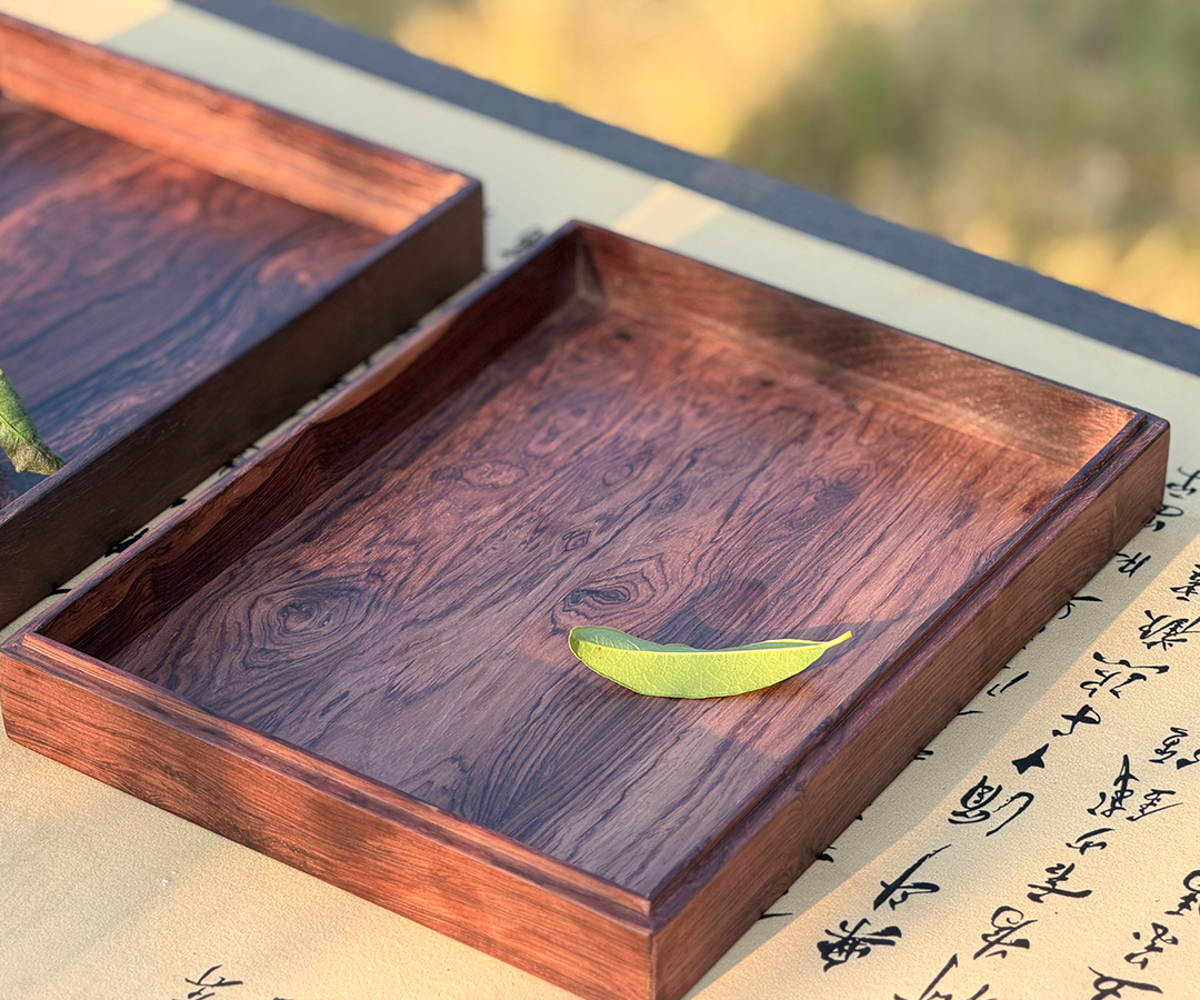 器型: 方正雅韵,边框严丝合缝,承托面平整开阔,侧边一体成型无冗余饰件,极简中见木作功底。适配: 可作茶盘承盏、餐碟置物,也能当案头雅器收纳文玩香具 —— 摆得下烟火食光,也衬得起书房清趣,是日常里的 “轻中式” 质感好物。