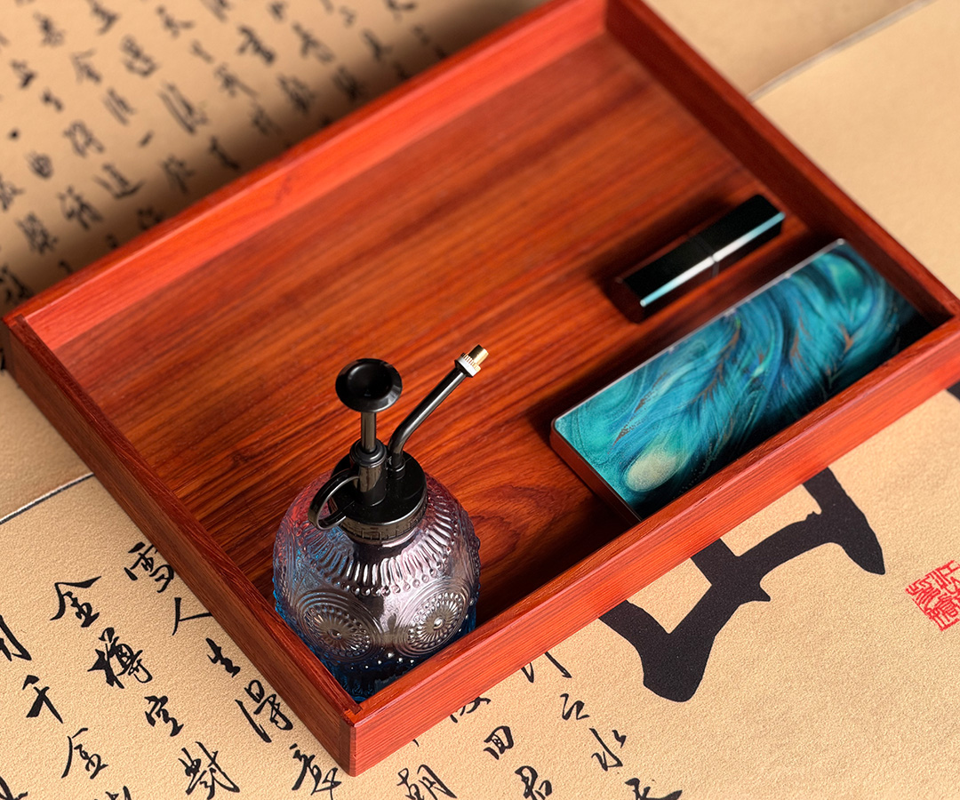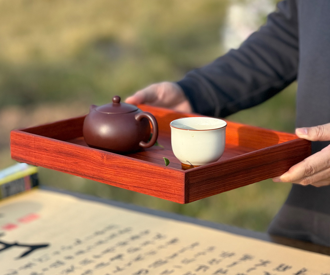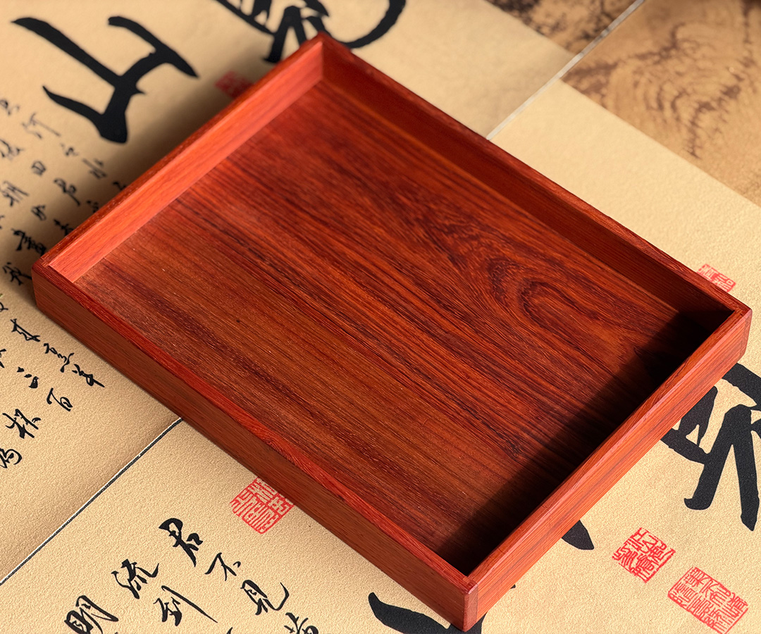 器型: 方正雅韵,边框严丝合缝,承托面平整开阔,侧边一体成型无冗余饰件,极简中见木作功底。适配: 可作茶盘承盏、餐碟置物,也能当案头雅器收纳文玩香具 —— 摆得下烟火食光,也衬得起书房清趣,是日常里的 “轻中式” 质感好物。