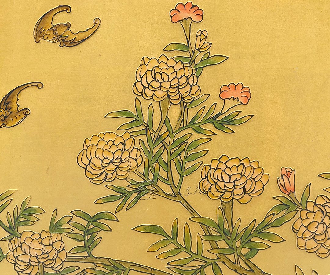 取清代 “福寿富贵” 吉祥题材,将宫廷工艺与文人意趣融于一屏: