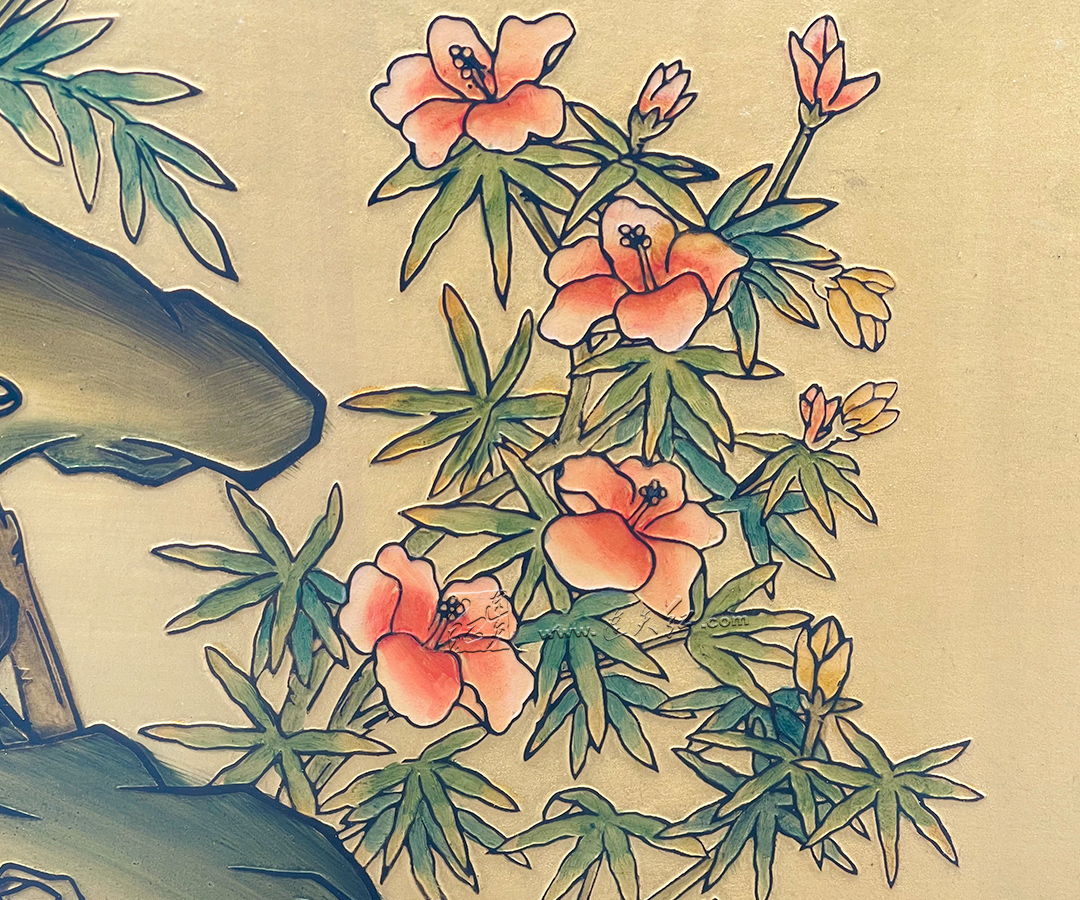 灵芝簇簇、湖石嶙峋,既含 “长寿如意” 的期许,又添文人园林的清雅意趣。